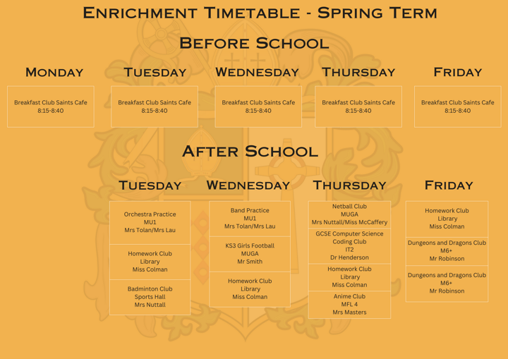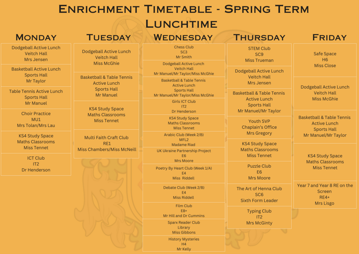 We update our timetable termly to reflect the clubs on offer to pupils. Please see below for our current term’s timetable: